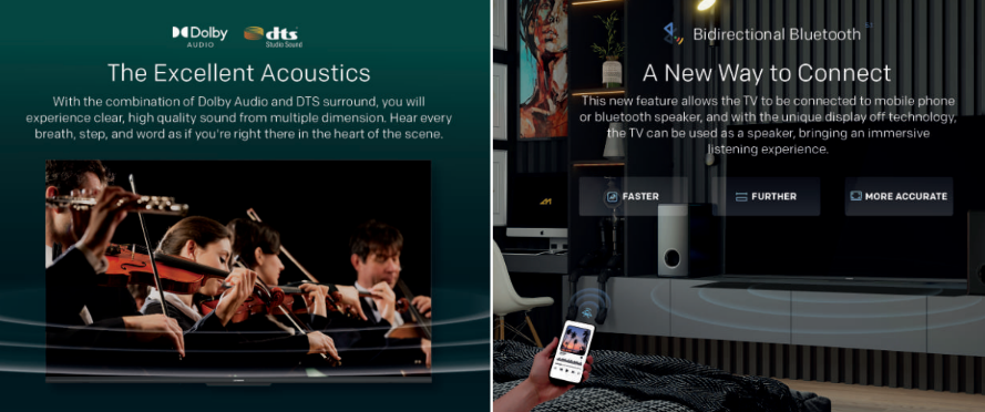 Bluetooth | Bluetooth 5.1 | Audio | Sound System | Dolby Audio, dts Studio Sound | FILMMAKER MODE | |||