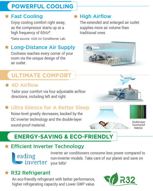 AUX ASW-09CAR3DI 1.0HP INVERTER AIR COND (Without installation)